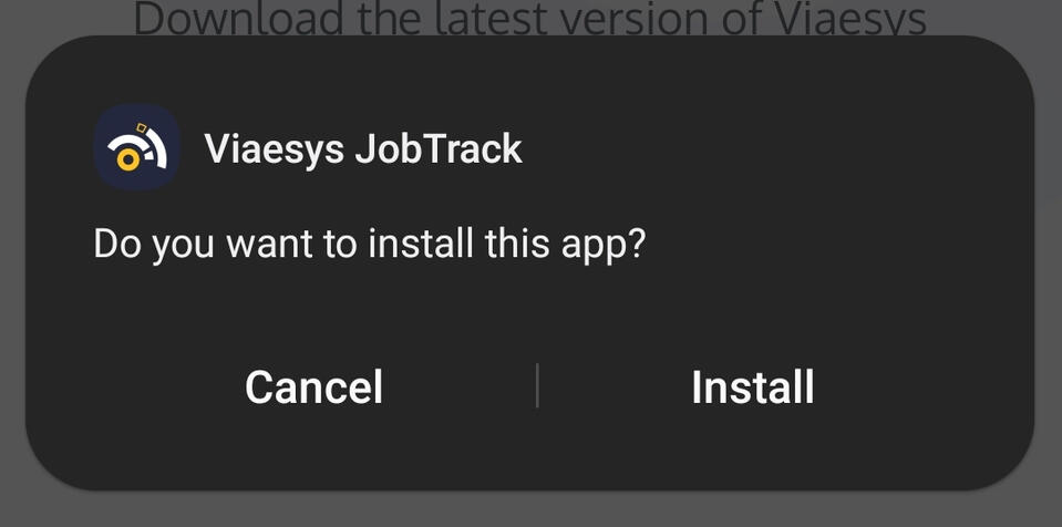 You will now be prompted to install the application. (Note: If you do not see a prompt, open the application file from your download location in STEP 1)Tap on InstallOnce Viaesys JobTrack is successfully installed you can tap Open to start the application.